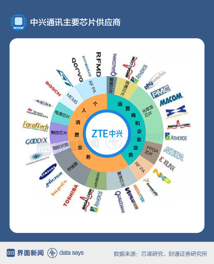 另一方面,高通、博通和英特尔等美国半导体巨头都在向中兴出售芯片。路透社指出,如果中兴受到制裁,高通等美国半导体公司将遭遇三重威胁:失去一家重要客户(中兴),对手因成为替代厂商而受益(三星、联发科等),因中国报复美国而受牵连。