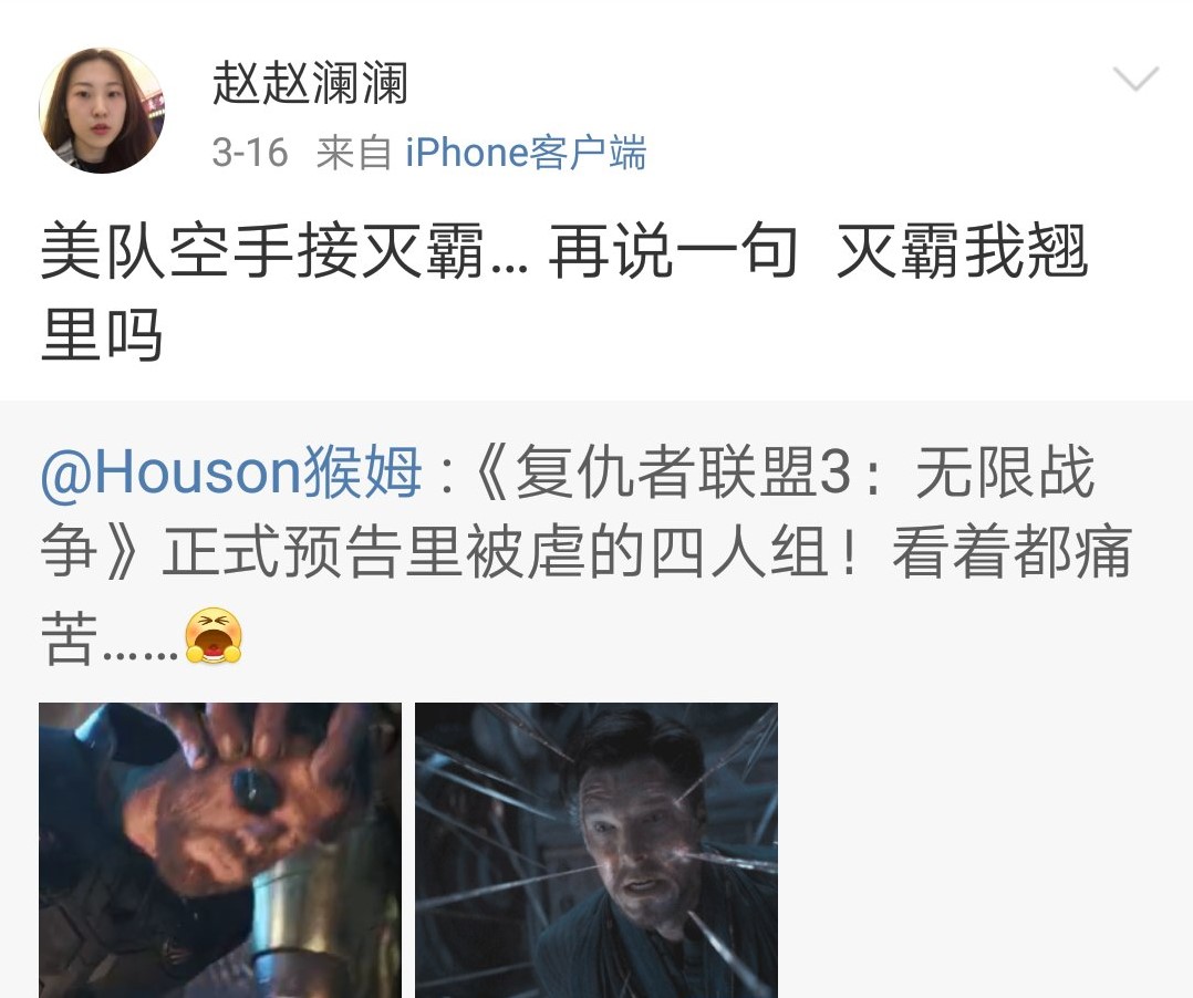 我身边也不知道打哪儿冒出来了无数的漫威粉,化身复仇者撕天撕地,一天一夜过去了也不消停。