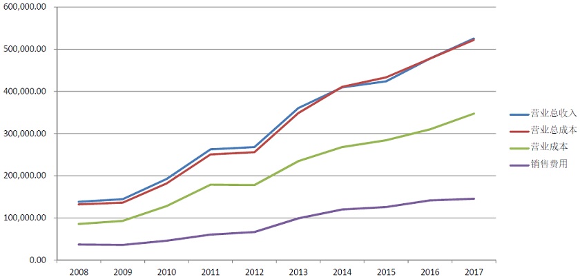 从上图可以看出成本和费用对三全食品业绩的影响。自从2008年上市以来,三全食品营业总收入的增加就伴随着总成本的抬升。由于成本抬升很快,几乎没有给公司留下太多盈利空间。营业成本与销售费用是两个较大的支出项目,也都分别随着营业总收入的提高而上升。