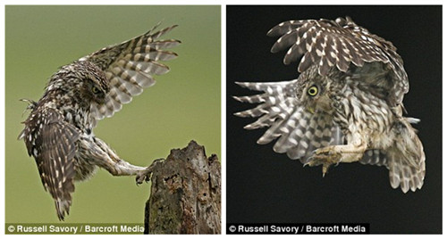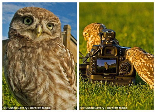 Russell Savory建立了一个相机陷阱去捕捉幼年和成年猫头鹰的有趣画面。