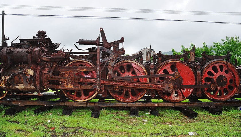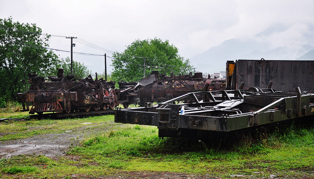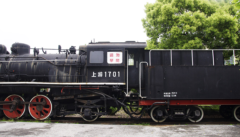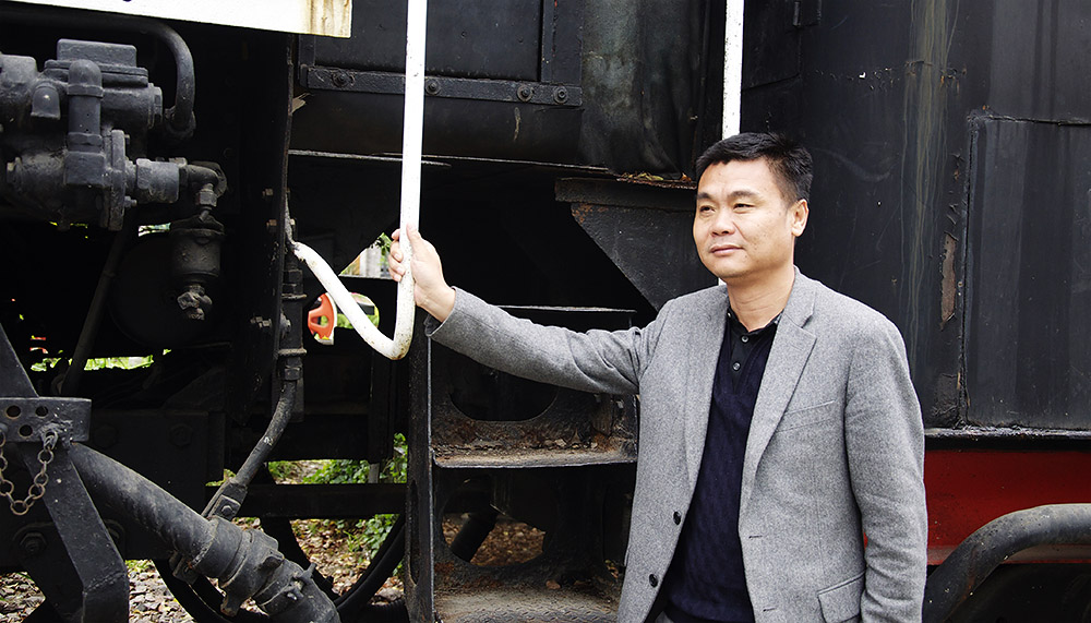 四月中旬的荻浦花海,樱花和郁金花的花期已经有些过了,雨中的荻浦花海显得有些萧条。花瓣散落在公园里的小径上,放眼望去,满是各式各样的蒸汽机车头、绿皮火车,这些都是郝金喜的收藏。这个坐落在杭州市桐庐县的小公园是郝金喜的一个基地,陈列着他所珍爱的关于火车的藏品。退役的火车大部分都需要修复,而有一些火车因为太过于陈旧,已经是锈迹斑斑、残破不堪,仿佛风一吹就会簌簌的掉下铁屑和碎渣。郝金喜形容它们是“从垃圾堆中扒出来的躯干”,而这些破旧的“废铁”是郝金喜最乐于向外人炫耀的东西。