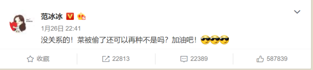 面对范丞丞的Rap忘词,范冰冰第一时间发微博,称“菜被偷了,还可以再种不是吗?”范丞丞被学员cue“最想和范冰冰演戏”,范冰冰也立即调侃,“是感觉自己家的菜又被偷了吗?”范丞丞成功出道,范冰冰道贺“福西西!出道快乐!未来可期!”还称“说真的,我的确露出了姐姐般的微笑!谢谢大家!”