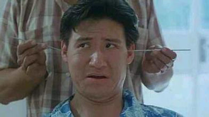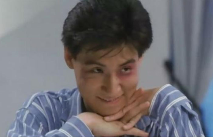 表情的出处是王家卫的处女作《旺角卡门》,张学友在里面演一个死要面子还很丧的配角乌蝇哥。