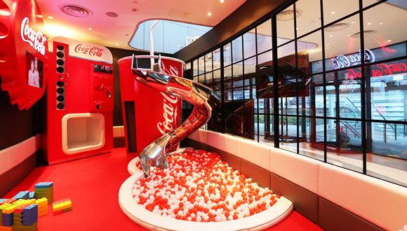 区别于普通餐厅,这个主体餐厅里随处可见与可口可乐相关的设计元素;可口可乐提供的最先进的饮料设备,可以提供更好的消费体验。这里就餐,消费者还能参加小丑表演等多种互动游戏。餐厅外的露台上,设有一个空中菜园,未来将摆满种有不同蔬菜的花盆,供消费者以购买年卡的方式认购,等成熟后可以现场采摘烹调。
