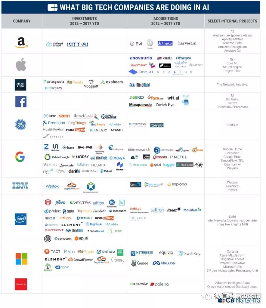 此外,谷歌是大型科技公司中在人工智能领域最活跃的投资者和收购者,从更多的投入中挖掘人才并与即将到来的人工智能应用建立关系。