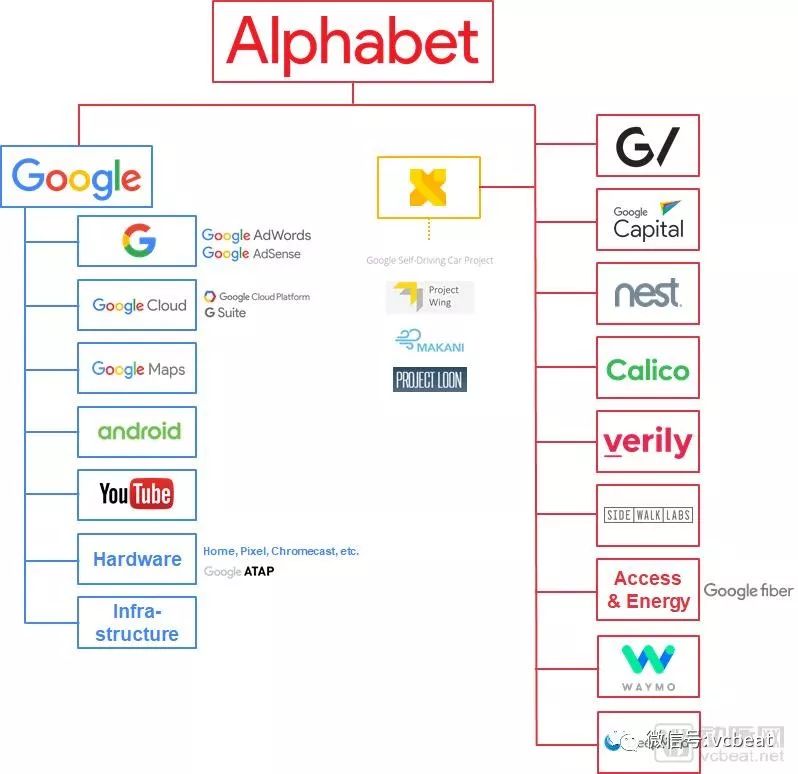 改组为Alphabet后,谷歌的整体结构