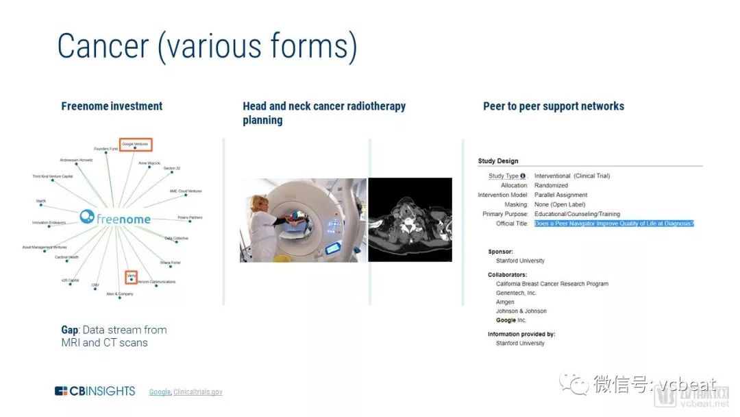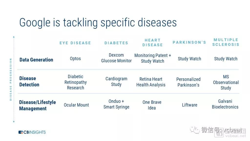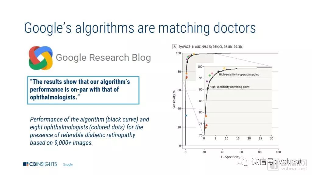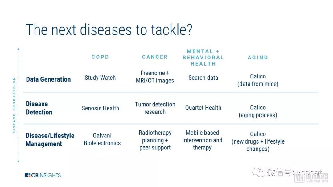 基于上述分析,CBinsights认为谷歌最有可能的成功领域可能在于增强检测、分类和提出疾病计划的能力,特别是在使用成像技术进行手术的情况下(眼病,癌症等)。
