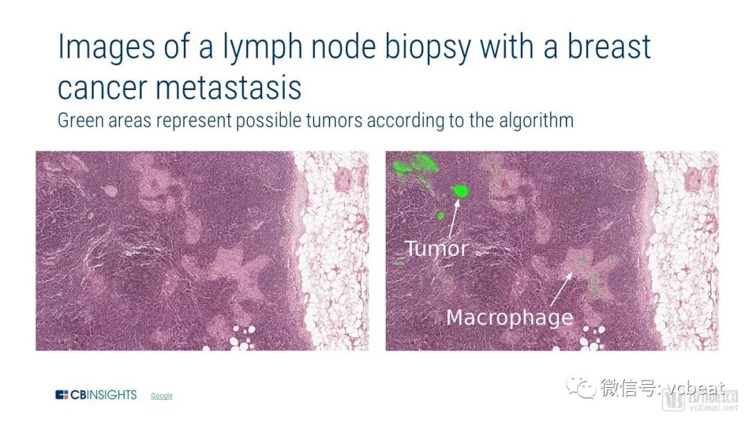 2017年,该公司发布了有关肿瘤鉴定的研究,在该研究中,对已经转移到邻近淋巴结的现有乳腺癌图像集进行了算法培训。该算法可以以92%的准确度检测肿瘤,但仍然会有小几率的假阳性存在(例如可能)。