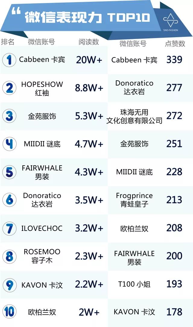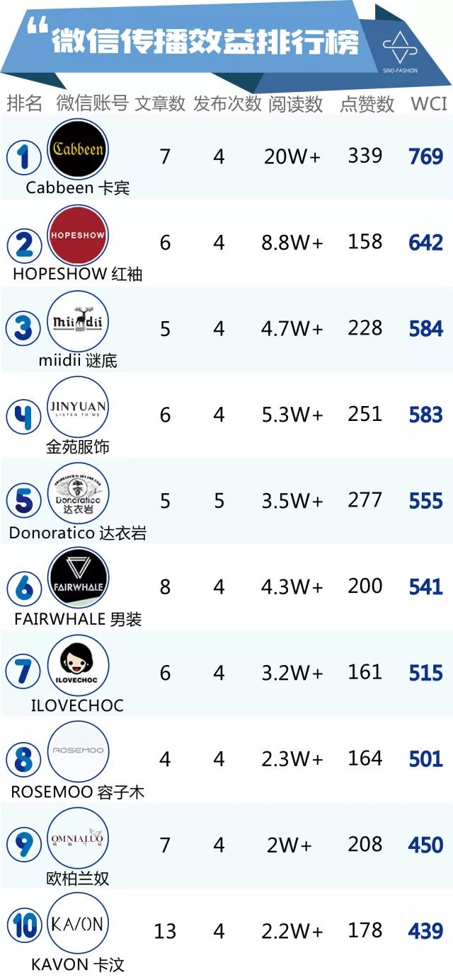 3月榜单中卡汶的微信传播力尤其不错,虽然未进总榜TOP10,但依然在微信传播力排行榜、微信阅读量和点赞数的前10中占据了一席之地。