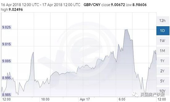 英国时间4月17日早晨六时许,英镑对人民币汇率冲到了9.02。虽然随后又出现了小幅滑落,但在中午12时,又涨回了9以上。