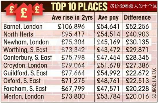 伦敦的Barnet,Newham,Croydon和Merton都有上榜。位于伦敦北部的好学区Barnet表现尤其抢眼,两年升值几乎是主人的一倍。