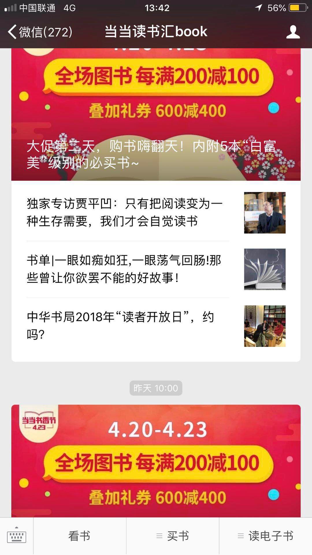 当当对这活动有多重视,我们可以从它的宣传上看出。在与当当有关的公众号上,当当网、当当均在19日当天发布了活动促销的海报;以分享书籍为主要目的的当当读书汇book自19日至今已连续三天用海报作为头图;当当童书则是以文章的形式推广此次促销活动。