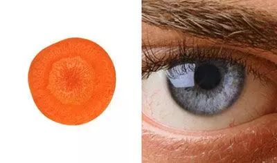 胡萝卜切开之后长得确实像人的眼睛,有瞳孔、虹膜,以及放射的线条,因此人们认为多吃胡萝卜可以保护视力,让眼睛更明亮。