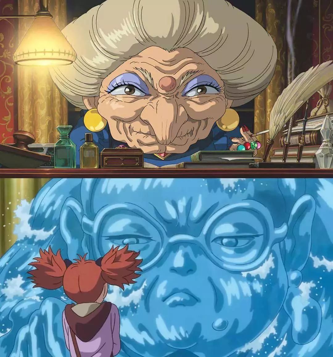 上图为《千与千寻》中的汤婆婆,下图为《玛丽与魔女之花》的校长