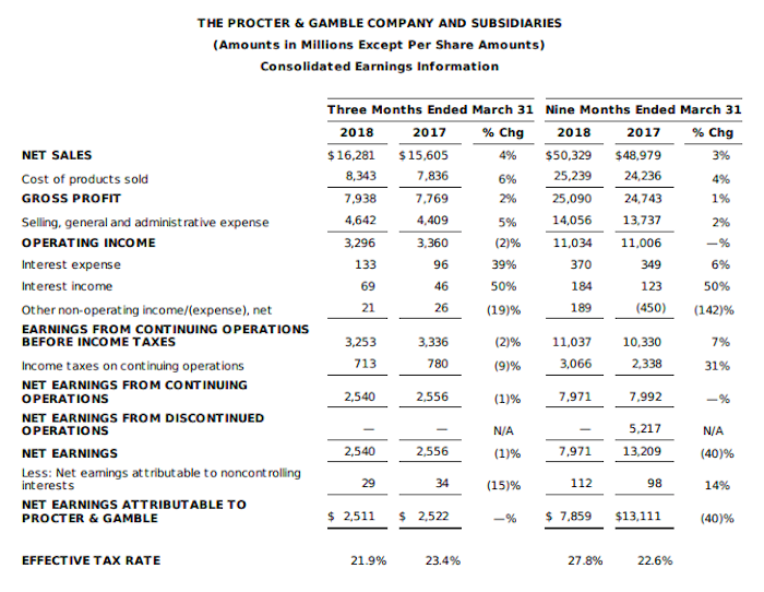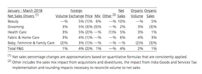 近日,宝洁集团最新公布了2018财年三季报,报告期内(2018年1月-3月)总销售额达到162.8亿美元,同比增长4%,净利润为25.1亿美元,均超过分析师预期。宝洁表示,业绩增长主要受益于集团美妆部门的增长,其他影响因素还包括对德国默克集团旗下消费者业务的收购,及近期汇率波动。