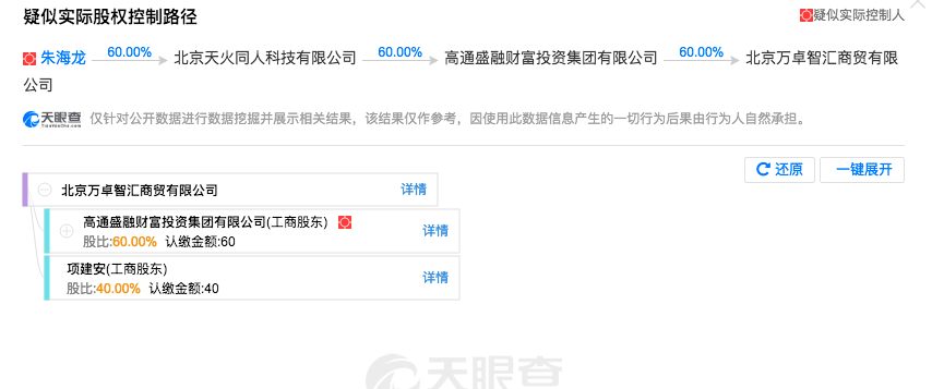 据官网信息,邻家便利店隶属于邻里家(北京)商贸有限公司,公司成立于2015年5月5日。查询邻里家工商资料不难发现,担任这家公司监事一职的项建安还是北京万卓智汇商贸有限公司的大股东、占股40%,持有另外60%股份的,是高通盛融财富投资集团有限公司,而高通盛融恰恰是善林金融创始人周伯云投资的公司之一。