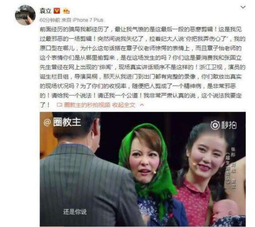 尤甚的是,强情节作用下的剧情综艺往往需要一个“坏人”角色,当然这种坏人也分为两种,一种是袁立被剪辑成“神经病”的案例,“你把人家剪成一个神经病,谁愿意干啊!”尤其是打着真人秀的牌子时,这种伤害便是之余艺人本身的,而不是影视剧上的“演技高超”。罗志祥事件的发酵亦是如此。