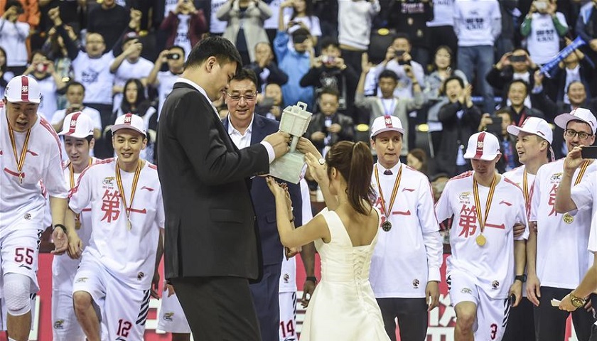 辽篮夺冠后,来到沈阳现场观战的CBA公司董事长姚明为球队颁发了冠军鼎。对于姚明来说,这次颁奖的意义同样不凡,因为这是他担任CBA公司董事长后颁发的第一座总冠军奖杯。