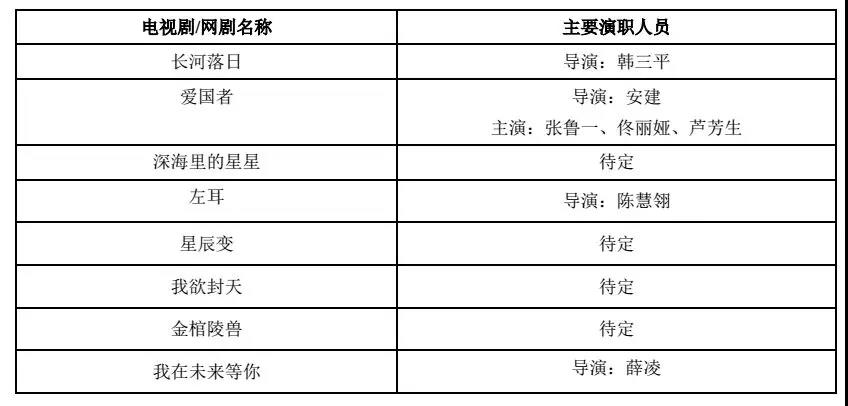 在2017年的业绩报告中,光线传媒公布了22部预计制作、播出电视剧/网剧(喊网络大电影)的项目,其中不乏韩三平等知名导演,以及张鲁一、佟丽娅、李光洁等知名演员。