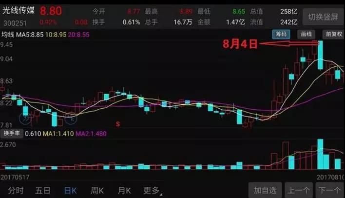 《战狼2》立项之后,光线传媒也是最早跟吴京团队接触的影视投资公司之一,双方一度达成合作,光线传媒的股价也因为参投《战狼2》的消息大涨。但是后来光线却未出现在《战狼2》的出品方中。