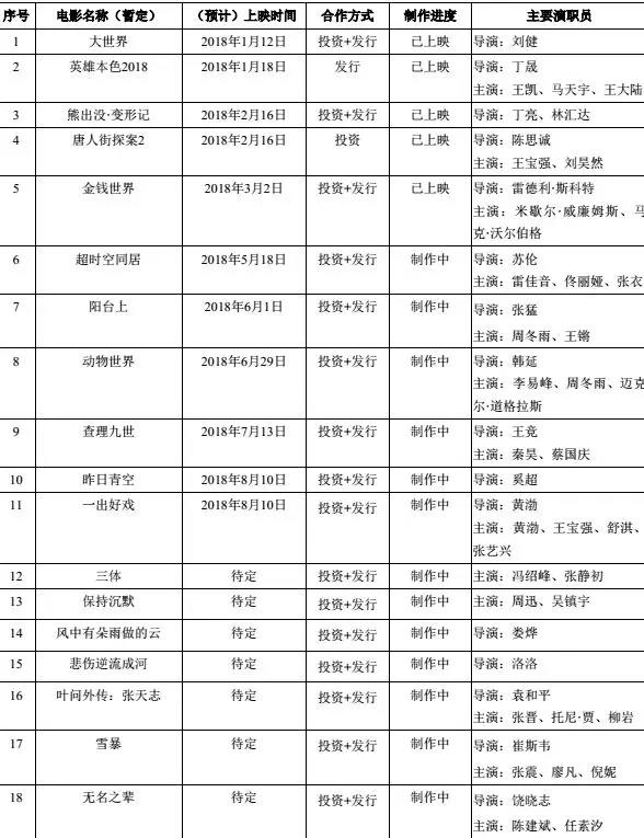 不过,今年春节档上映的《唐人街探案2》由光线投资,票房高达34亿,这部分收入将计入2018年一季度财报。