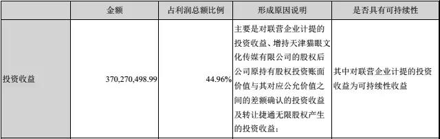 其一,是光线增持猫眼重新计量而确认的投资收益。