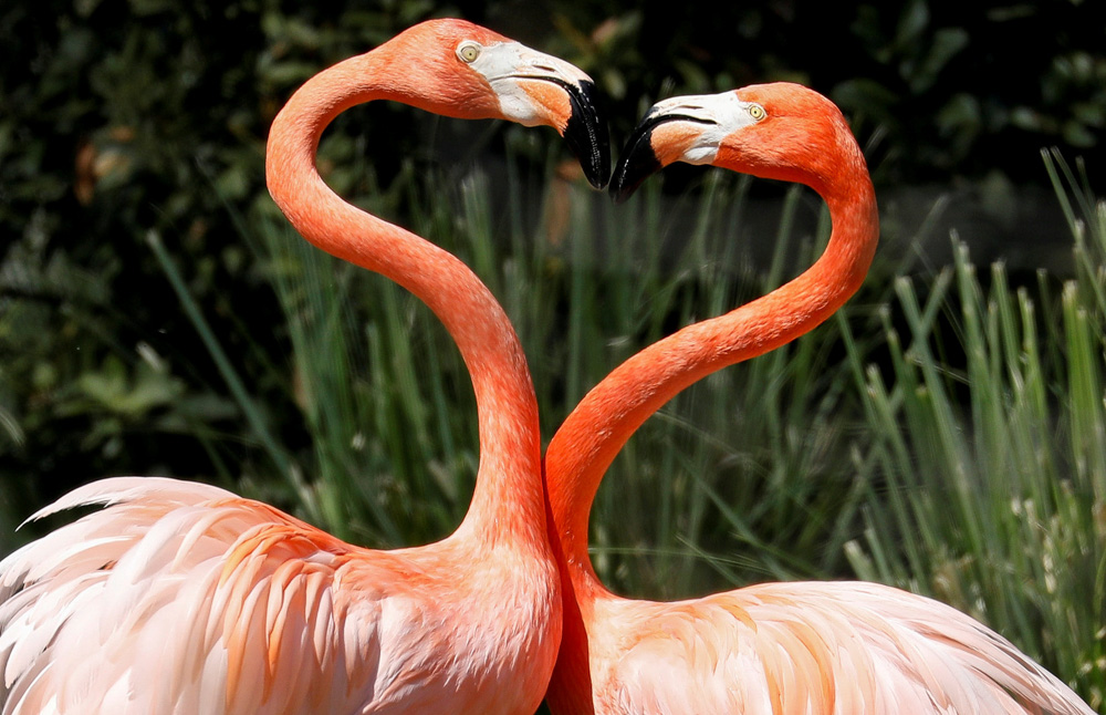 当地时间2018年4月18日,西班牙马德里,粉红色的火烈鸟在马德里动物园嬉戏。