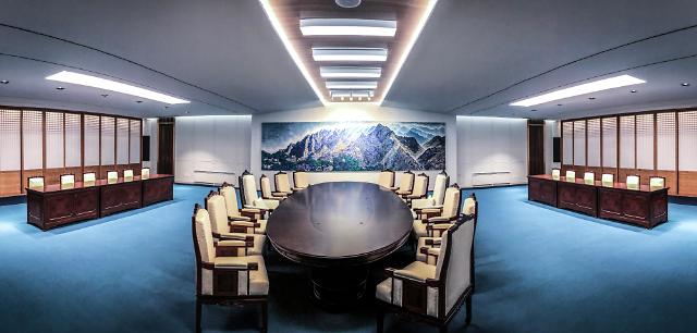 4月27日,韩国总统文在寅和朝鲜最高领导人金正恩将在板门店韩方一侧的“和平之家”举行首脑会晤。25日,韩国青瓦台公布了会晤场所的照片,其中最显眼的摆设是一张椭圆形的会议桌和一幅山水画。