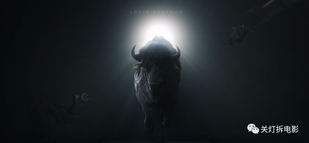 以牛身的背部特写进入,如自然界山峦的旭日东升,然而这个世界却是人造的。