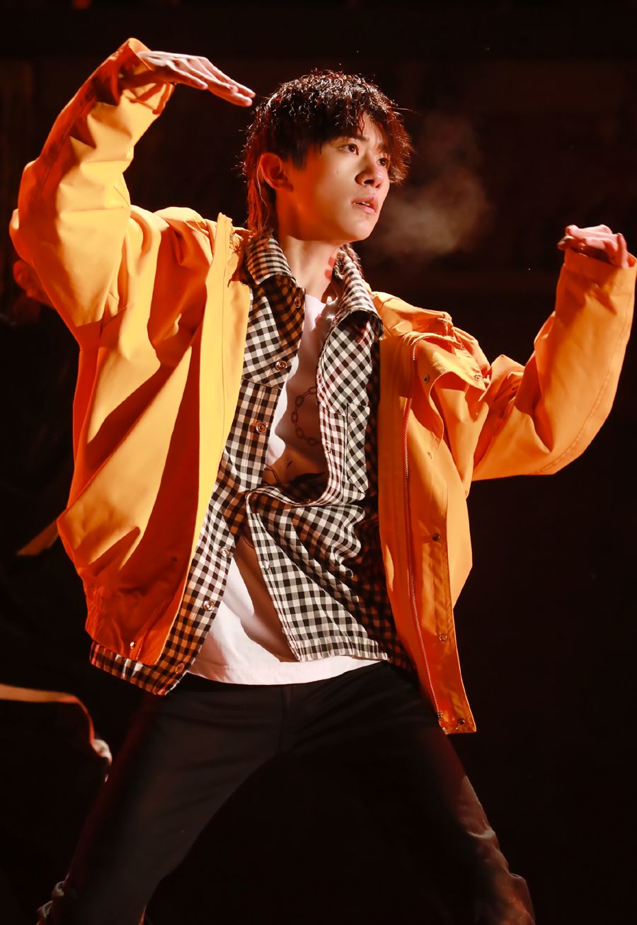 鹿晗也是,和舞伴一起在高调张扬的橘色校服内多系了一件格子衬衫,跳舞的时候它也跟着甩。