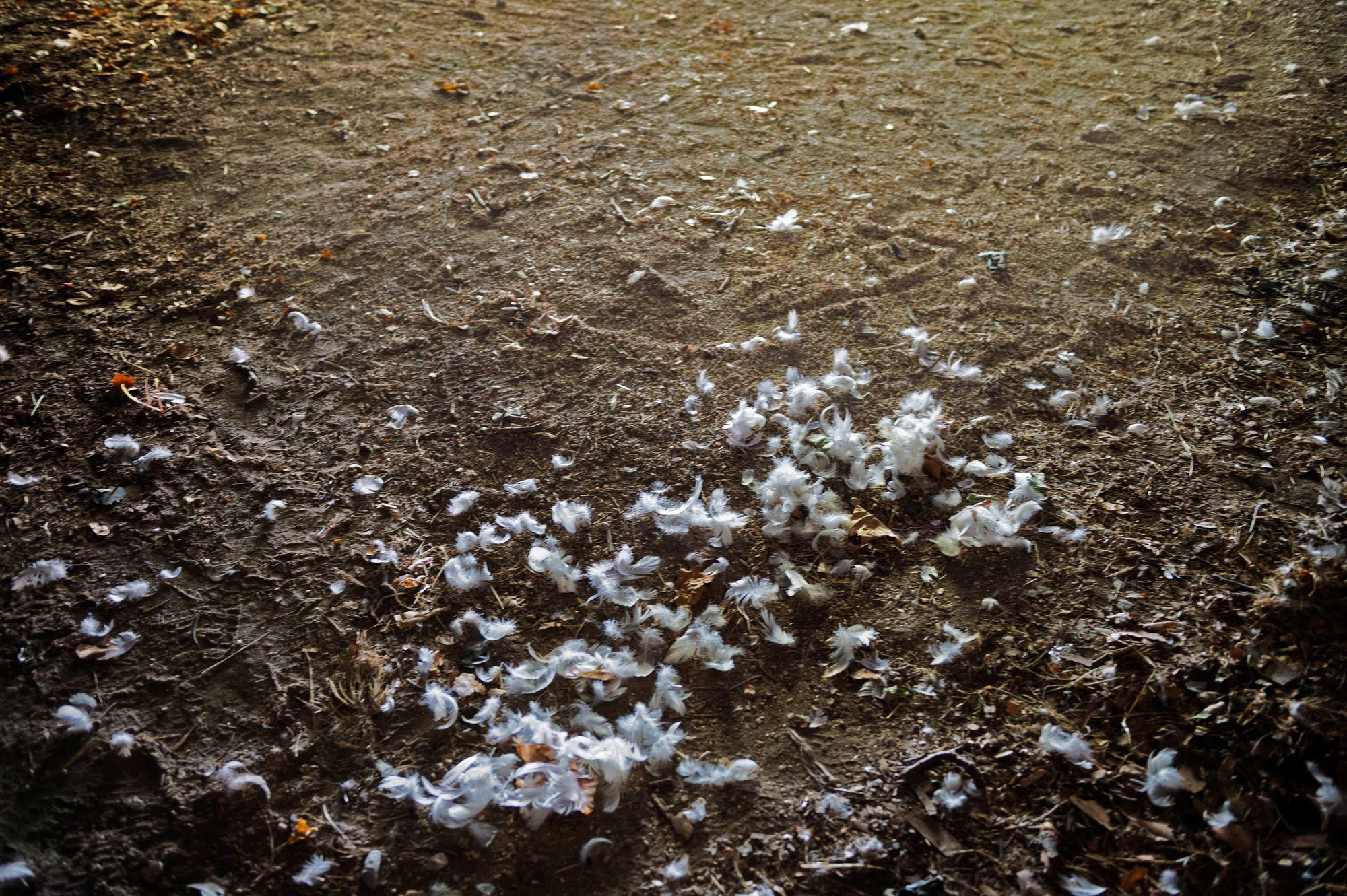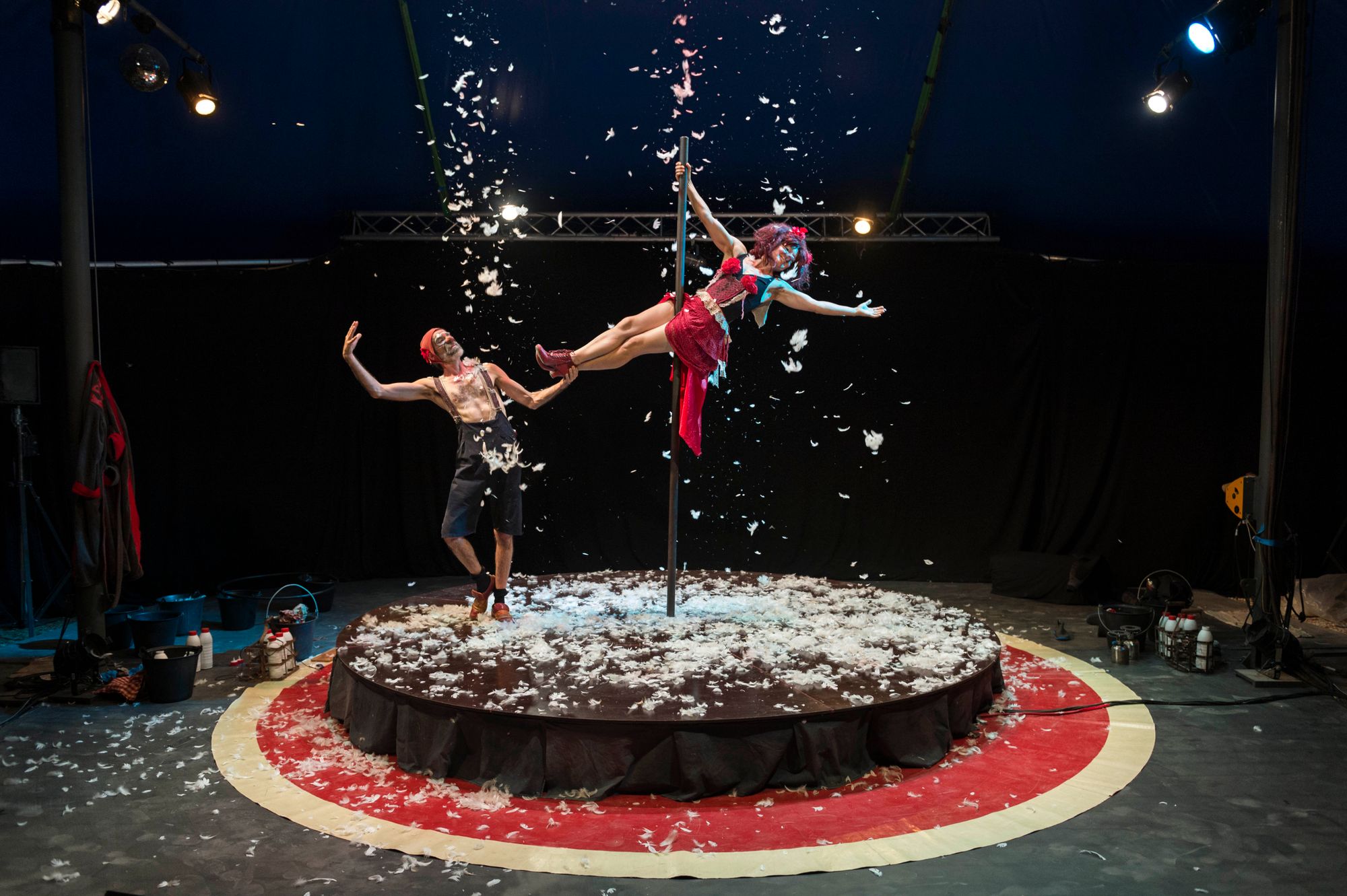 演出结束后地板上散落的羽毛。