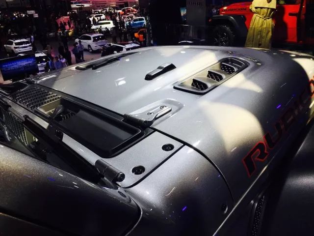除开表面要素的革新外,新牧马人的动力总成也发生着翻天覆地的改变。全新2.0升涡轮增压引擎将取代现款3.0升及3.6升V6自吸引擎,其最大功率与扭矩分别高达195kW和400N.m。从动力特性上讲,涡轮增压引擎较强劲的低速扭矩将大幅增加新牧马人的脱困能力,为翻山越岭提供有力保障。而鉴于涡轮增压引擎经常会工作在高温之中,所以新牧马人特意在机盖上设置了散热孔,这样一来即便在负荷巨大的越野情况下也能维持引擎运转的稳定性。