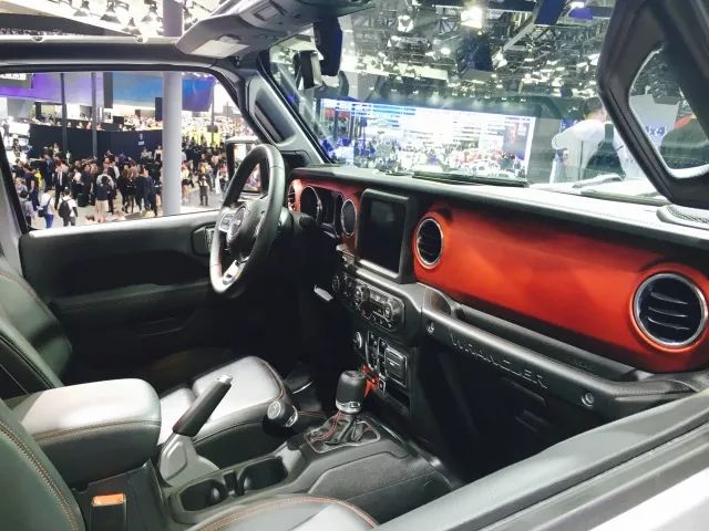 看上去廉价呆板的内饰质感是现款牧马人最大的软肋所在,不过随着新款的面世,这一瑕疵也将成为历史。在内饰布局上,新牧马人参照了过去的经典车型,比如威利斯与CJ系列,其中圆形出风口与硬朗的内饰线条搭配得十分融洽,致敬历史之时也不忘契合现代审美。
