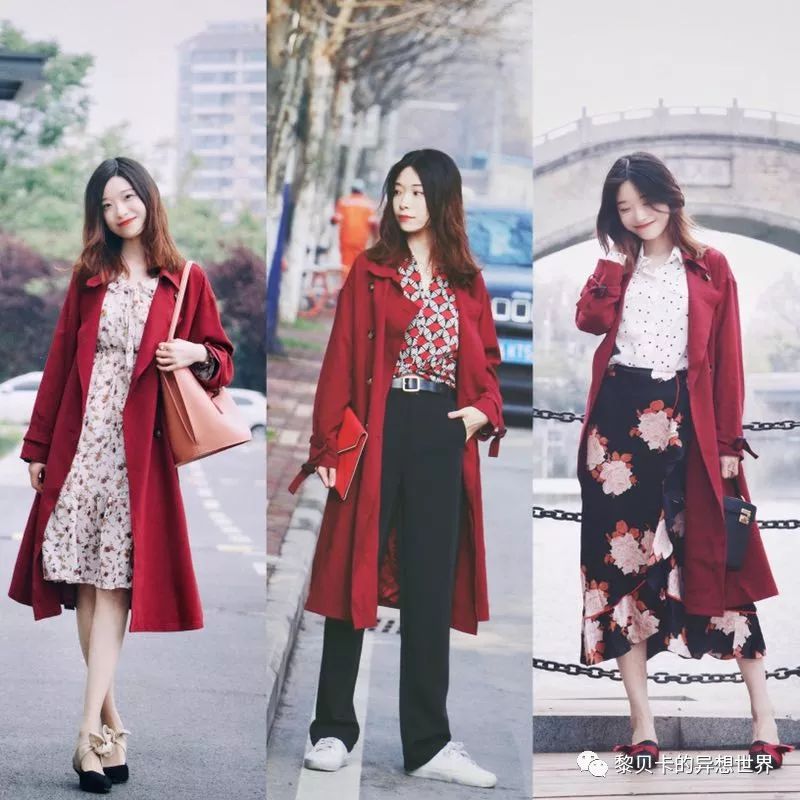 搭配灵感:红风衣我已经穿了两年,非常喜欢,用它完成的不同搭配超过十种以上,基础的版型亮眼又不过度夸张,是我衣柜里利用率最高的一件衣服。