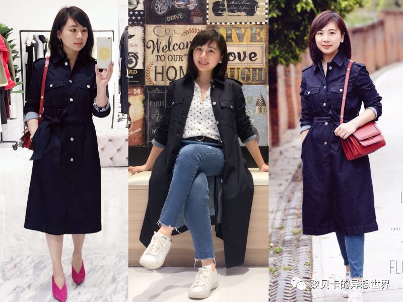 搭配灵感:亦是牛仔裙亦是风衣,edition10,牛仔裙搭奶奶鞋,一点lady;敞开穿,搭副眼镜小白鞋、一点复古;裙下加条牛仔裤,保暖又不失风格吧。