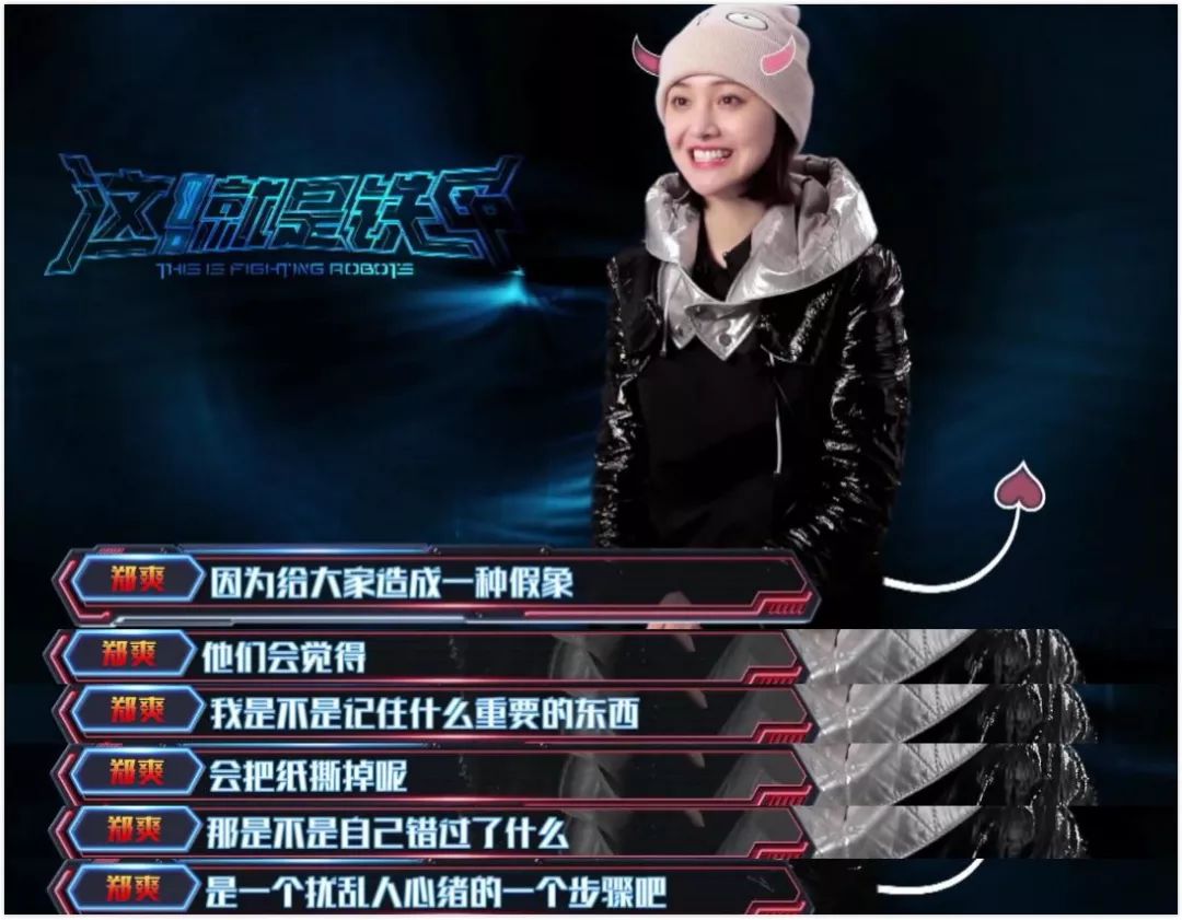 最近,许久没动静的郑爽又参加了一个新综艺——《这!就是铁甲》。