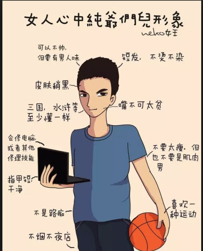 正因如此,中国人的爱情标准不是罗曼蒂克的爱情。在中国说某对夫妻婚姻美满,会说两人是恩爱的。为什么是“恩爱”而不是“浪漫爱”?因为一开始结婚并不需要一方爱另一方,反而是因为两人对彼此有恩情,从恩情中产生爱情。这种恩情就是老公养活了老婆,老婆为老公生子和操持家务。但在现在的中国,结婚的第一个前提就是相爱。所以,如今所谓的好男人不仅仅是养活对方,也得照顾好老婆和子女——这个照顾不止是物质上的照顾,也是情感上的照顾。