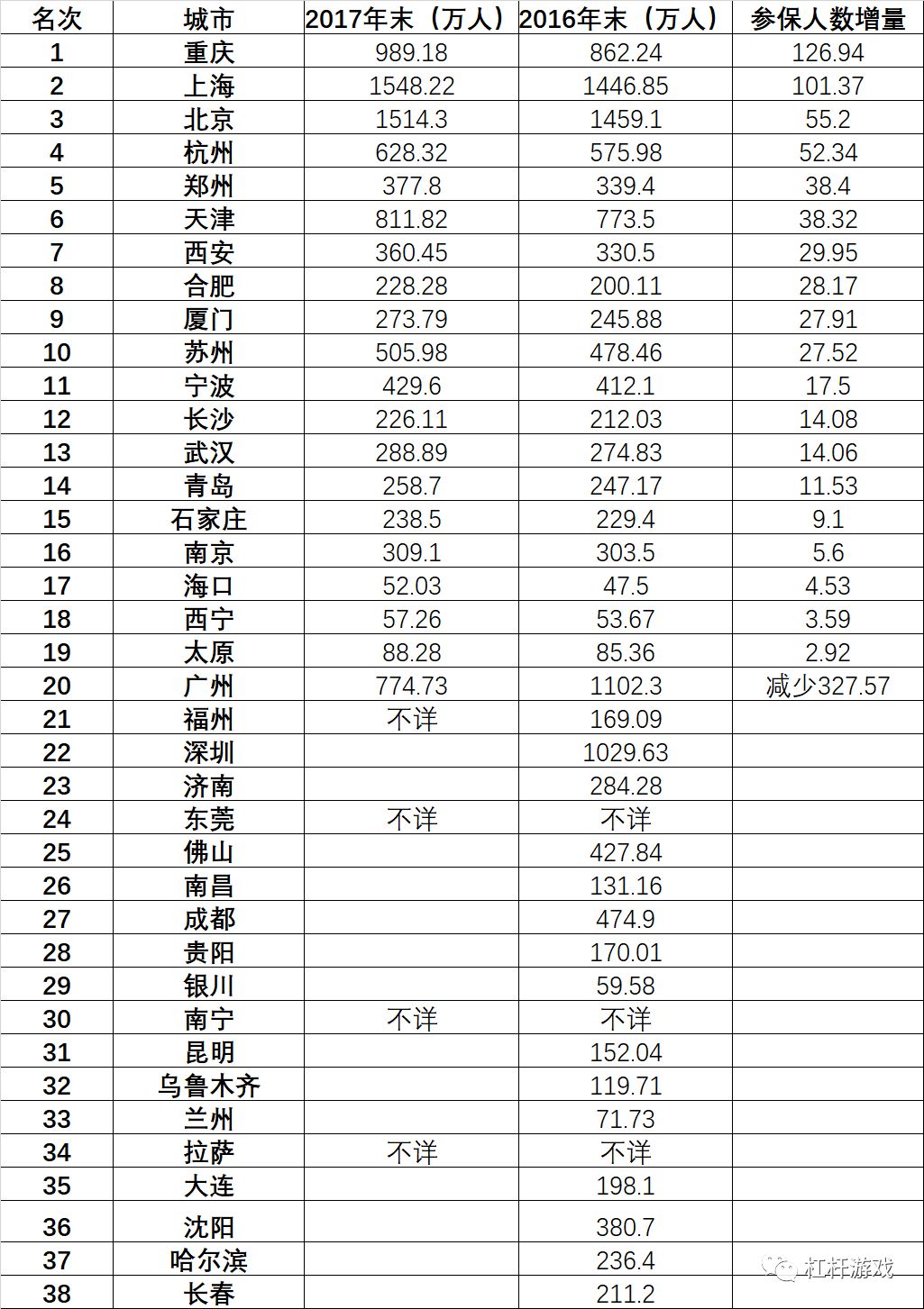 Ps:部分朋友对图2广州的数据可能有疑惑,杠杆游戏也有。之前我分析过,可能是之前在职/退休、城镇职工/城乡居民养老保险数据没区分,2017年做了严格划分。