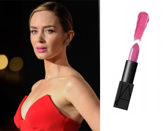 在《明日边缘》的纽约首映礼上,艾米莉·布朗特让化妆师Jenn Streicher将她的嘴唇涂成粉色,“我们都知道这跟红色晚礼服搭配,的确是很冒险。”Streicher给她用的是已经售罄的Nars丝缎亮泽唇笔 #Villa Lante,我们可以试试颜色相似的Nars纵欲惹火唇膏 #MARISA。