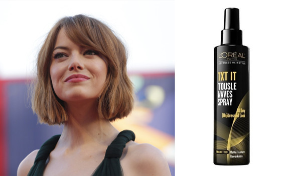 发型师Mara Roszak给艾玛·斯通的新发型喷上这瓶喷雾,增加“失重蓬松的质感”。