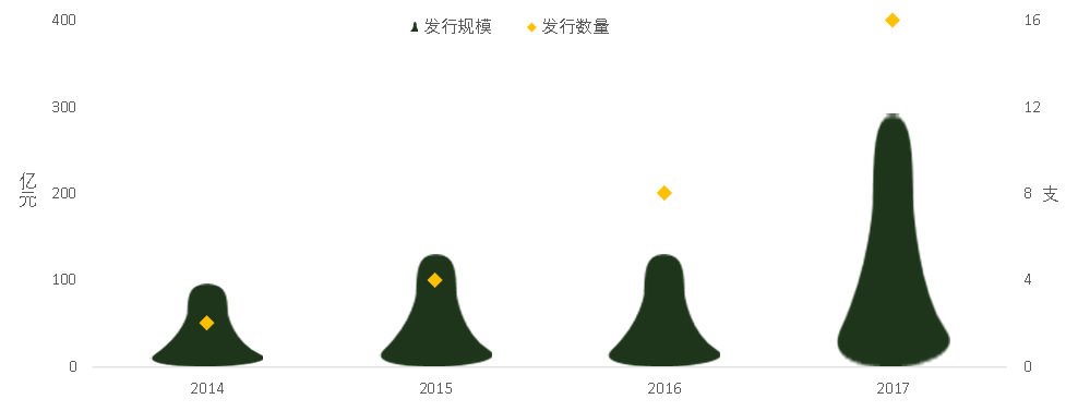 图:2014-2017年我国类REITs发行规模、数量及收益率