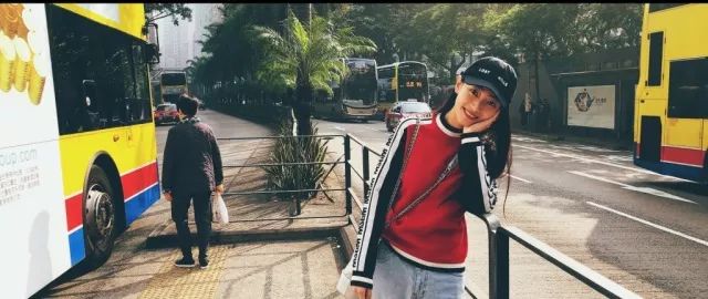 棒球帽搭配黑白红的拼接夹克,也是充满青春阳光的少女气息~