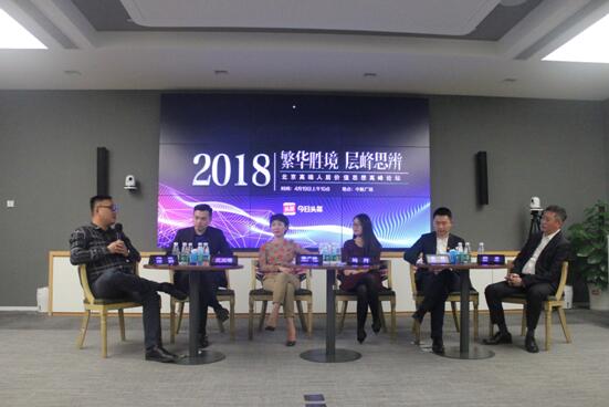 2018年4月19日上午,北科建集团领秀·翡翠墅营销总监焦广艳、保利北京营销管理中心总经理袁野、金地集团华北区域营销总经理马丹、中粮置地北京公司营销管理中心副总监沈笑啸、远洋天著春秋营销总监田丰,以及主持人今日头条大北京区房产总编辑|常务副总经理邱旸齐聚中航大厦,共同畅谈“豪宅的荣耀”。