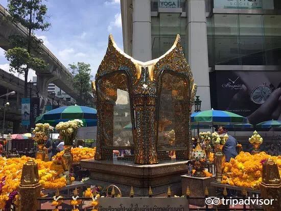 四面佛庙(Erawan Shrine) 位于曼谷市中心的四面佛坛是泰国香火最鼎盛的膜拜据点之一,四面佛有四尊佛面,分别代表健康、事业、爱情与财运,掌管人间的一切事务。到曼谷不拜四面佛,就像到了北京没去故宫一样!据说四面佛的灵验超乎寻常,所以更有虔诚之人请舞者献艺给佛观赏,常常捐款给寺庙和慈善机构。需要注意的是,拜四面佛要顺时针方向逐面拜。
