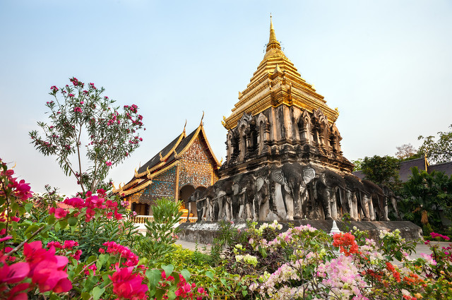 清曼寺(Wat Chiang Man) 这是清迈第一座寺庙,所以也是最老的寺庙。这里不仅有清迈至今为止最早的佛像,还供奉有两尊祈雨非常灵验的佛像,Phra Sila与Phra Sea Tang Khamani,在当地人心目中有着很高的位置。寺庙非常美,特别是寺庙的后面的大象佛塔,基座就有15只大象。不要忘了,拍照的好时机是在僧人们下午5点左右出来喂鱼和鸽子的时候哦。