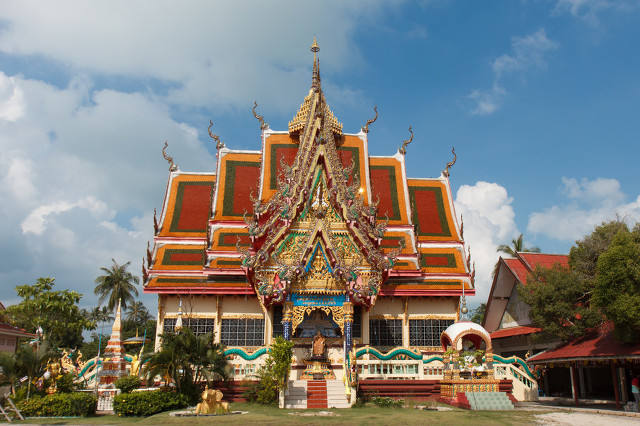 千手观音庙(Wat Plai Laem) 千手观音庙位于泰国苏梅岛,这个寺庙有很多美丽多彩的建筑,观音和其他佛像雕像,还有一些上面附有复杂的马赛克和绘画的漂亮建筑物。这个地方适合所有年龄段人来,你可以开自己的车或租一辆出租车到这里,参观寺庙的最佳时间是在晚上,当所有灯照耀着这座美丽有趣的寺庙时,一切都活了起来。在寺庙前俯瞰水面,景色也是相当美。