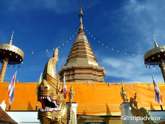来康佛寺(Wat Phra That Doi Kham) 这里是本地人经常参拜的寺庙,游人并不多。值得一提的是,传说来康佛寺是清迈最为灵验的寺庙,所以香火特别旺。这里是大佛像寺庙之一,远眺清迈该寺庙位于清迈夜间动物园旁边不远的地方,可看清迈市区全景以及清迈机场,安静、漂亮。你可以选择可开车直接到寺庙,也可在山下停车步行或者搭乘缆车上山。