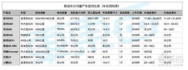 在今年,威马EX5、奇点iS6、蔚来ES8、小鹏G3都将实现交付,至少解决量产问题就是拉开差距的第一步。