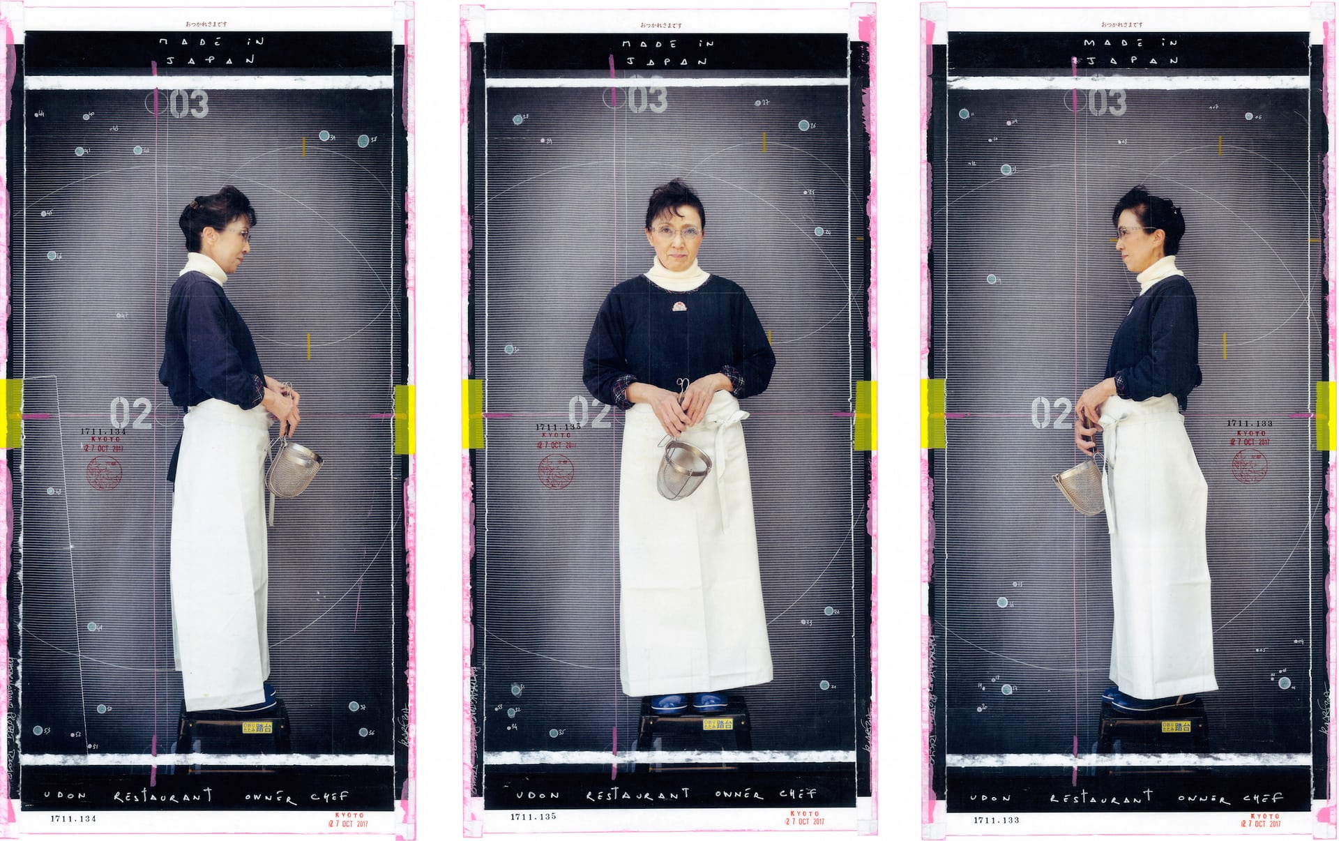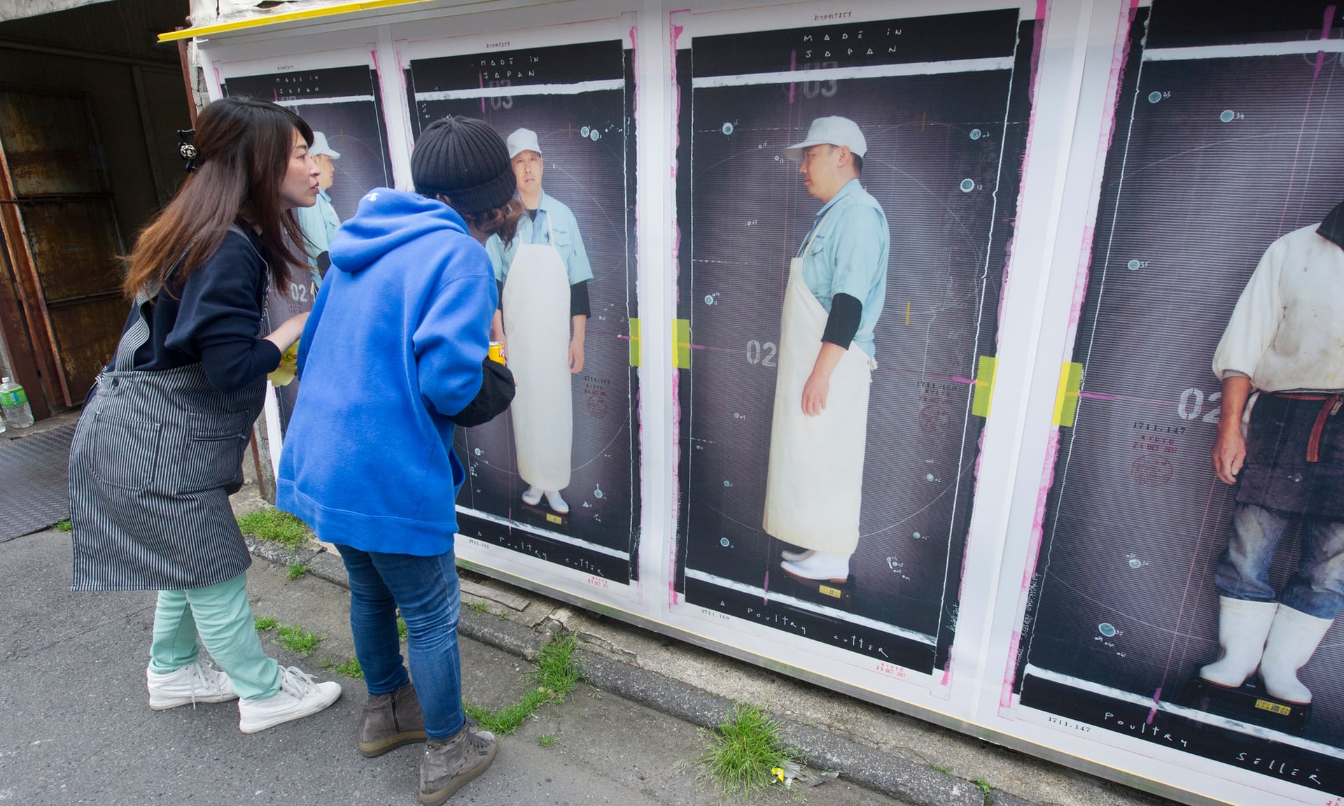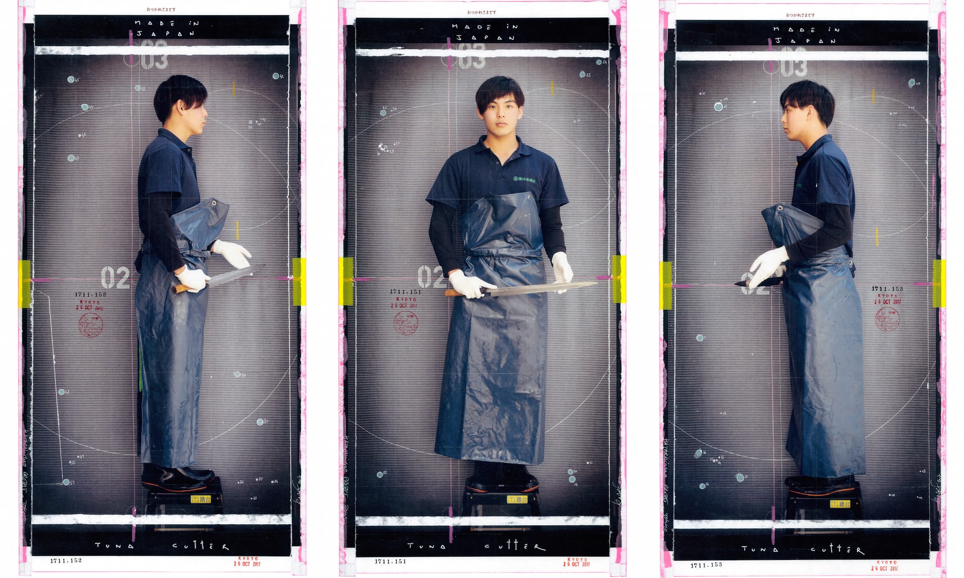 京都的中央批发市场激发了K-Narf的创作灵感,他用自己的作品向日本文化中备受尊崇的自豪工作精神表达了敬意。在摄影节开幕当天,K-Narf的作品引起了观众们的一阵兴奋:原来,这些作品是几乎与真人大小相仿的肖像,肖像中的人物正是批发市场里的商贩。在这些人物中,前来参观的人们找到了自己的朋友与同事。K-Narf说,这个项目的核心在于关注京都本地的居民并让下一代人保持对这种工作精神的敬意。