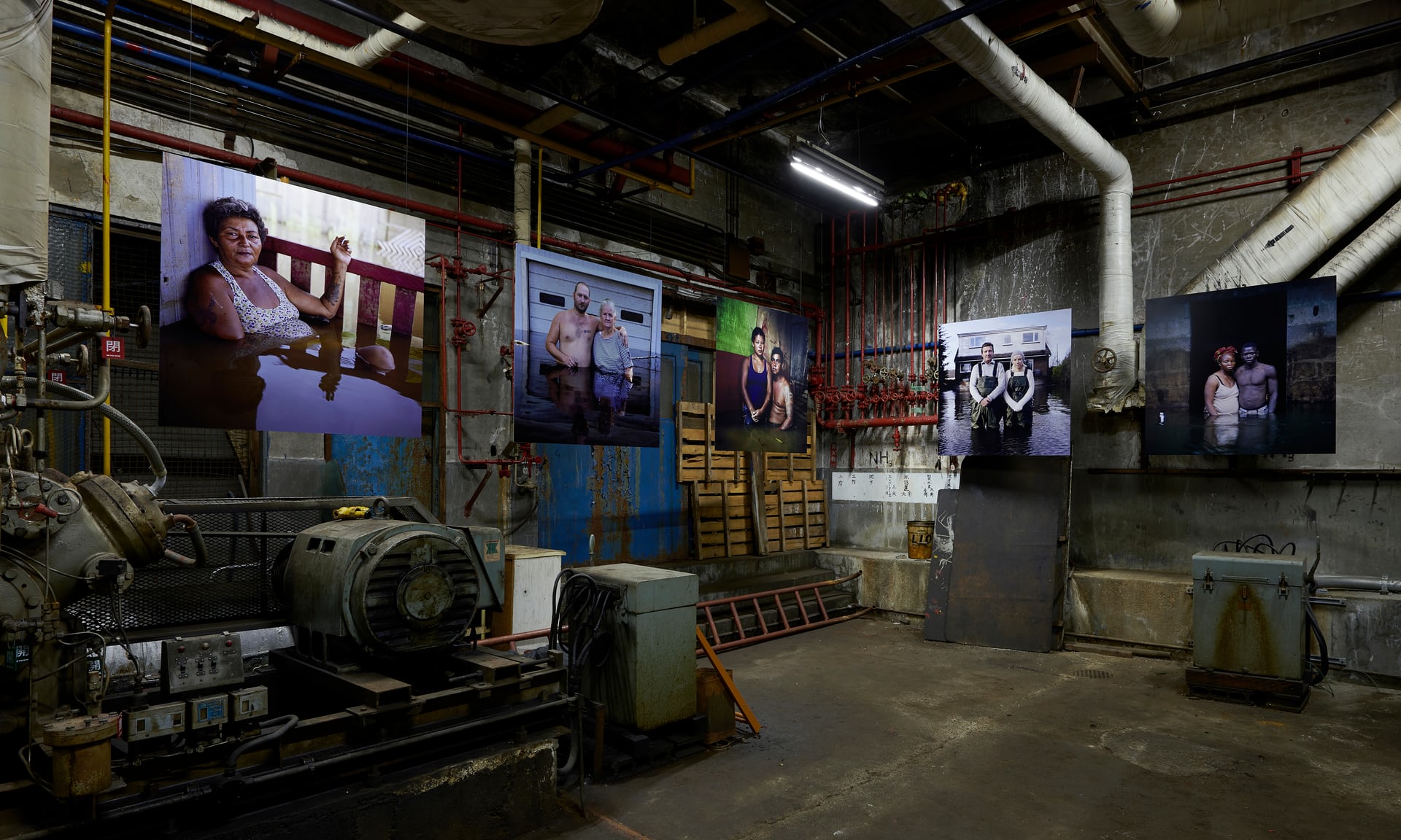 摄影师Gideon Mendel的作品陈列在一处废弃的制冰工厂里。出生在南非的他主要用系列肖像与视频探索了一些令人绝望的生存空间——从洪水泛滥之地到因工业与自然环境变化而受到灾难性打击的地区,这些作品尝试着与身处那里的人们建立起联系。